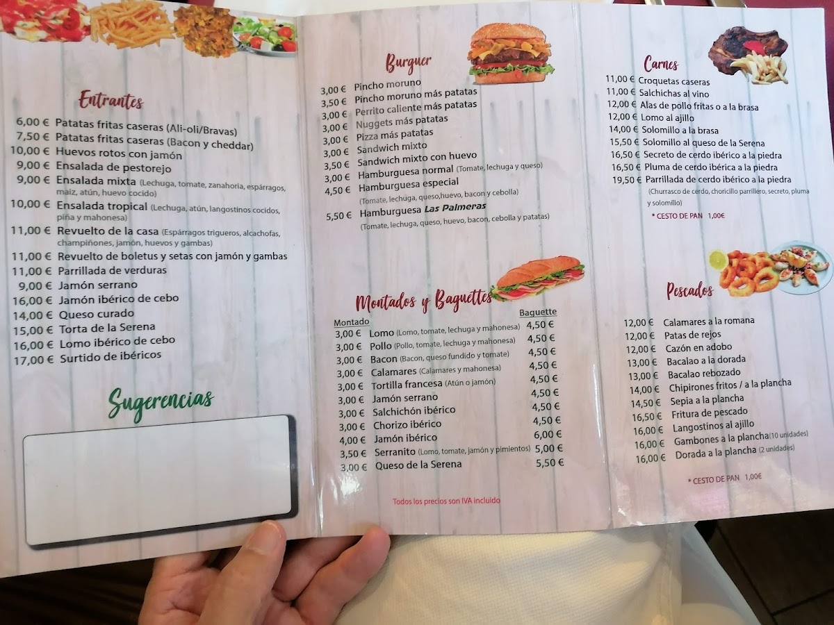 Cafetería Restaurante las Palmeras Menu